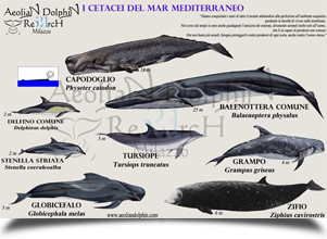Il Mar Mediterraneo è il più grande mare “chiuso” del mondo: 2,5 milioni di kmq. In esso vivono circa 900 specie di pesci e circa 400 specie di piante marine. Ospita un altissimo numero di specie endemiche (circa il 20%), paragonabile a quello dei mari tropicali. Vivono numerose specie di Cetacei, otto delle quali vengono considerate “regolari”, in quanto frequentemente avvistate. Esse sono: la stenella striata Stenella coeruleoalba (Meyen, 1833) , il delfino comune Delphinus delphis Linnaeus, 1758, il tursiope Tursiops Truncatus (Montagu, 1821), il grampo Grampus griseus (G. Cuvier, 1812) , il globicefalo Globicephala melas (Traill, 1089), lo zifio Ziphius cavirostris G. Cuvier, 1823, la balenottera comune Balaenoptera physalus (Linnaeus, 1758) e il capodoglio Physeter catodon Linnaeus, 1758.